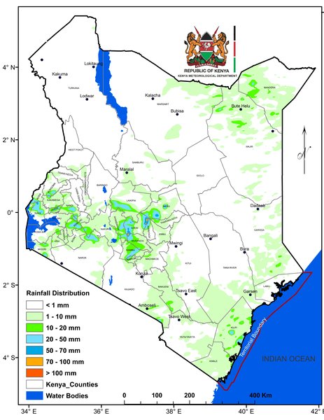 Most parts of the country are likely to be sunny and dry. However, rainfall is expected in some parts of the Highlands East and West of the Rift Valley, the Lake Victoria Basin, the Rift Valley, the Coast, the South-eastern lowlands and North-eastern Kenya.